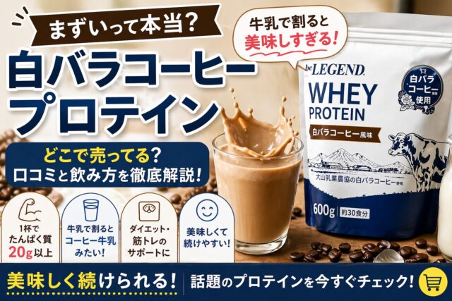 白バラコーヒープロテインは、人気のご当地ドリンク「白バラコーヒー」をイメージしたプロテインです。